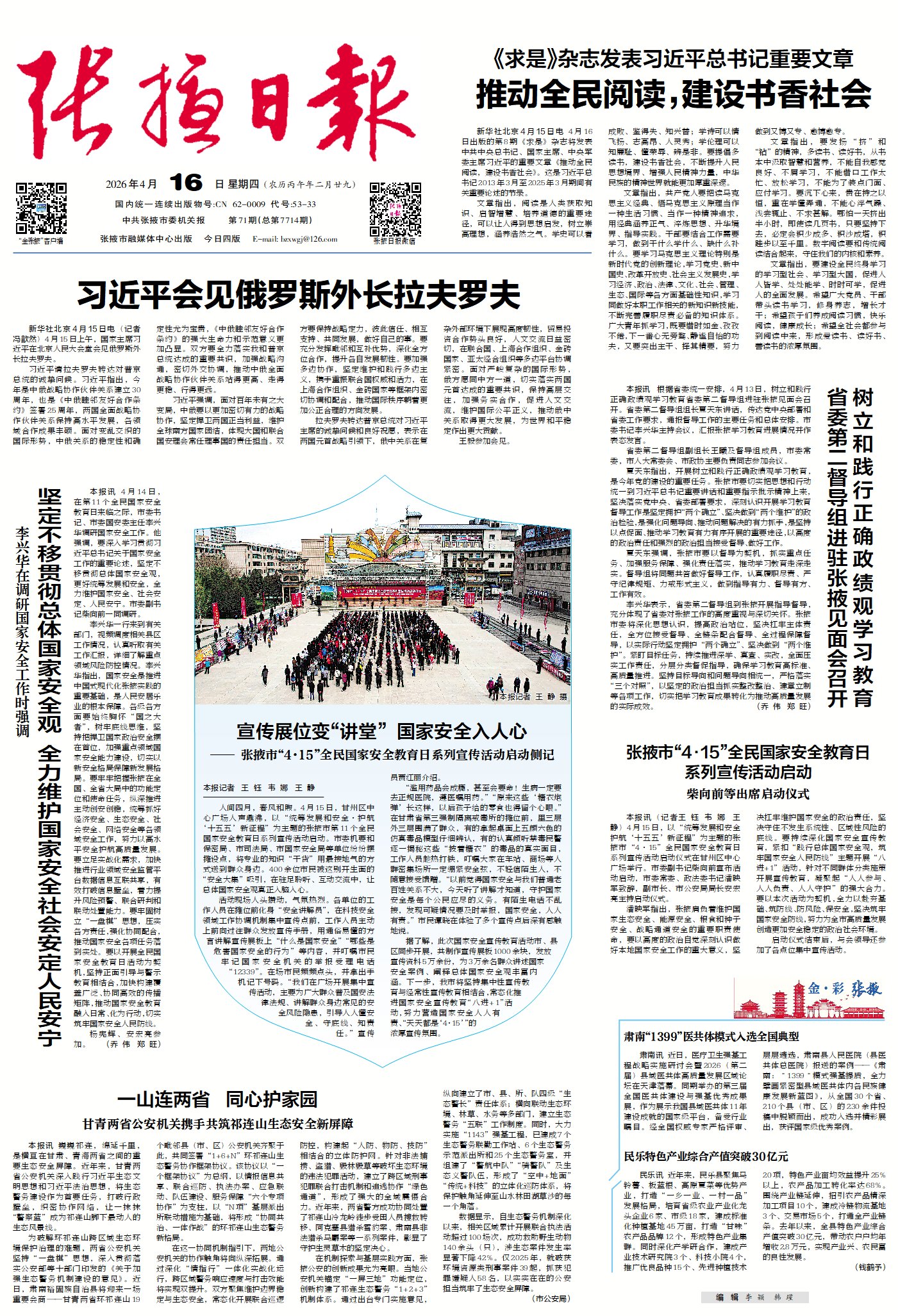 张掖日报头条