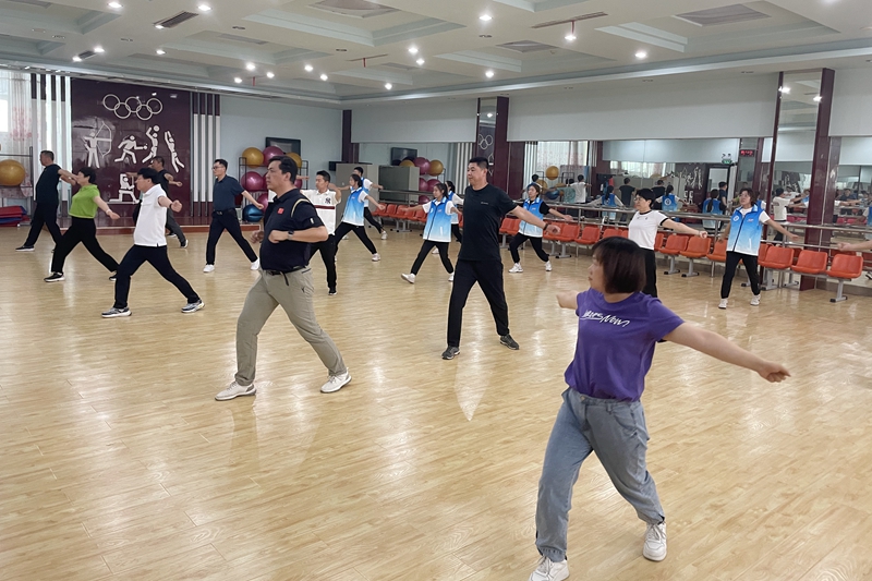 活动中,市全民健身中心教练员以《第九套广播操》后四节为主要内容,采用理论讲解和实操演练相结合的方式,对动作要领由浅到深、层层递进,逐一进行讲解。广大干部职工一起跟着音乐节拍,对《第九套广播操》后四节动作进行了完整梳理和系统掌握。