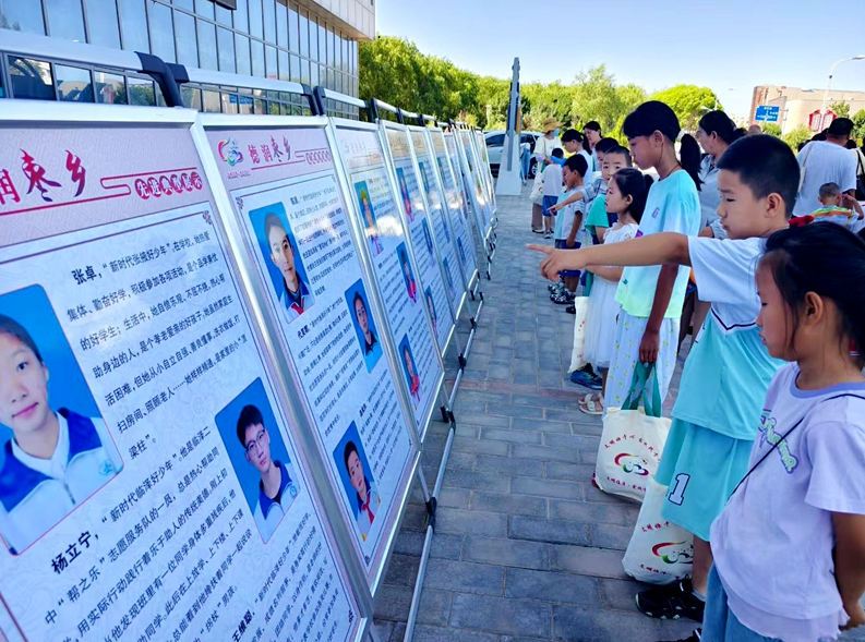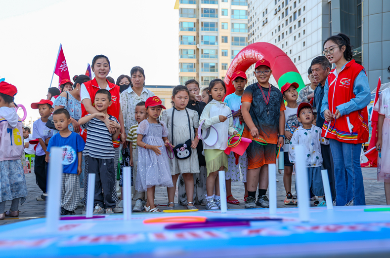 活动现场,处处涌动着青少年们的欢声笑语与蓬勃朝气。“青春小舞台”风采展示中,青少年儿童用葫芦丝吹奏乐曲,用音乐传递信心和力量。经典诵读环节中,孩子们以饱满的热情和清亮的声音集体朗诵《少年中国说》,稚嫩却铿锵的声音充满着对未来的憧憬和向往。文明“趣”闯关活动现场,俨然成了一片充满活力的欢乐海洋,跳房子的格子间,印着“富强”“民主”等社会主义核心价值观关键词,孩子们脚下的节奏正是价值观在悄然萌芽的模样。同时,投沙包、套圈、转盘答题等趣味游戏,也让青少年们在轻松有趣的氛围中,进一步加深对文明的理解与认同。活动现场还展示了省市县“新时代好少年”先进事迹等展板,引导更多青少年儿童向身边的榜样学习。