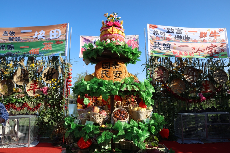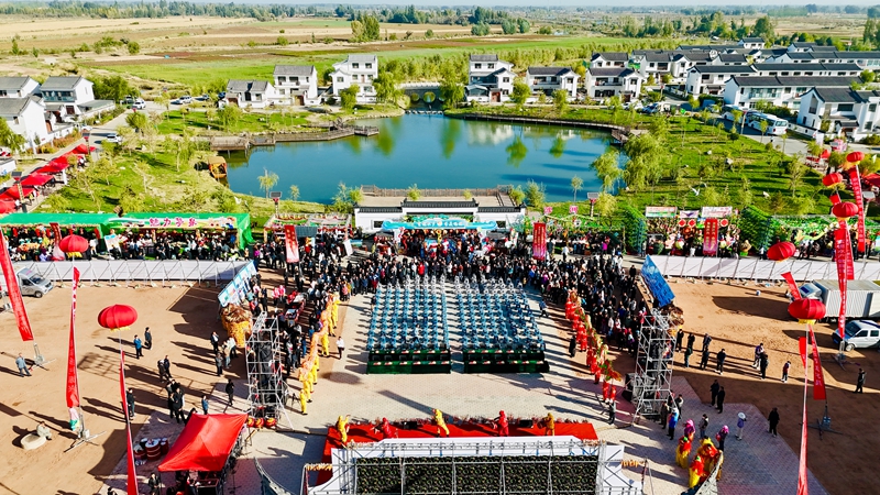 中国张掖网临泽讯 秋分至,丰收时。9月23日,临泽县2025年中国农民丰收节在鸭暖镇屯泉乡村振兴综合体举行,广大农民群众晒特产、展民俗、载歌载舞、歌颂劳动、礼赞丰收。