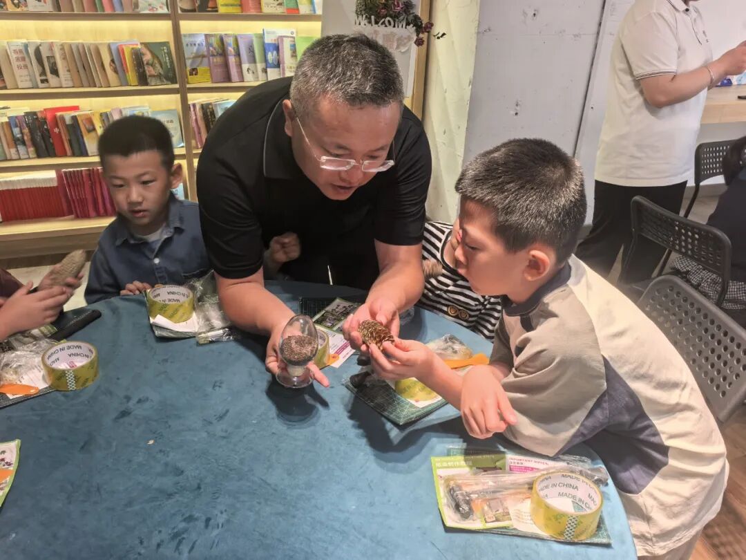 讲解员以“松果种子如何乘风而行”“种子如何吸水膨胀”等互动实验,引导孩子们观察植物生命的奥秘。孩子们通过吹动球果种子、触摸吸水种子,直观感受植物生长的奇妙过程。