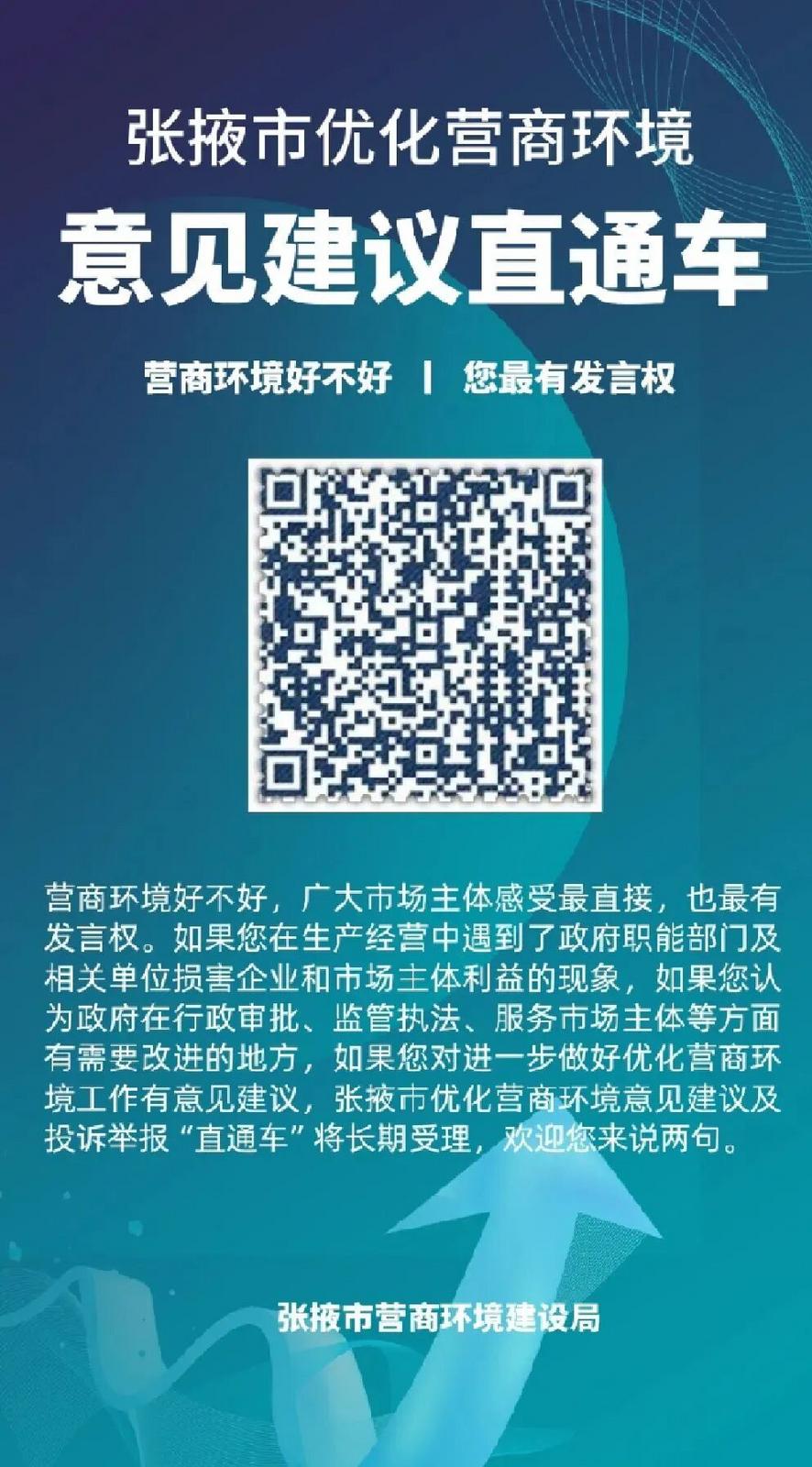 调查问卷打开方式二:关注“营商环境看张掖”微信公众号→“营商专区”→“调查问卷”