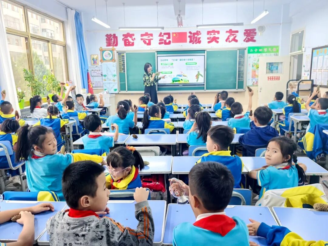 在劳动街小学课堂里,科普讲解员以“种子中的飞行家——云杉与油松”为主题,通过生动有趣的讲解和互动实验,带领学生们探索植物世界的奥秘,取得了非常好的效果。活动中,讲解员介绍了两种树木的生长习性、生活特点及重要作用,其独特的种子传播方式引起了学生们的浓厚兴趣,讲解员向学生们讲解了云杉和油松种子的飞行原理,展示了它们如何在自然界中“乘风破浪”,完成生命的延续。为了让同学们更直观地理解植物的特性,讲解员给每位同学带来了松果种球,还设计了球果的吸水实验,让学生们亲眼见证了球果在吸水后的变化。在互动提问环节,同学们踊跃发言,积极回答讲解员提出的问题。现场气氛热烈,不少同学凭借出色的表现赢得了小奖品,进一步激发了他们对科学探索的热情。