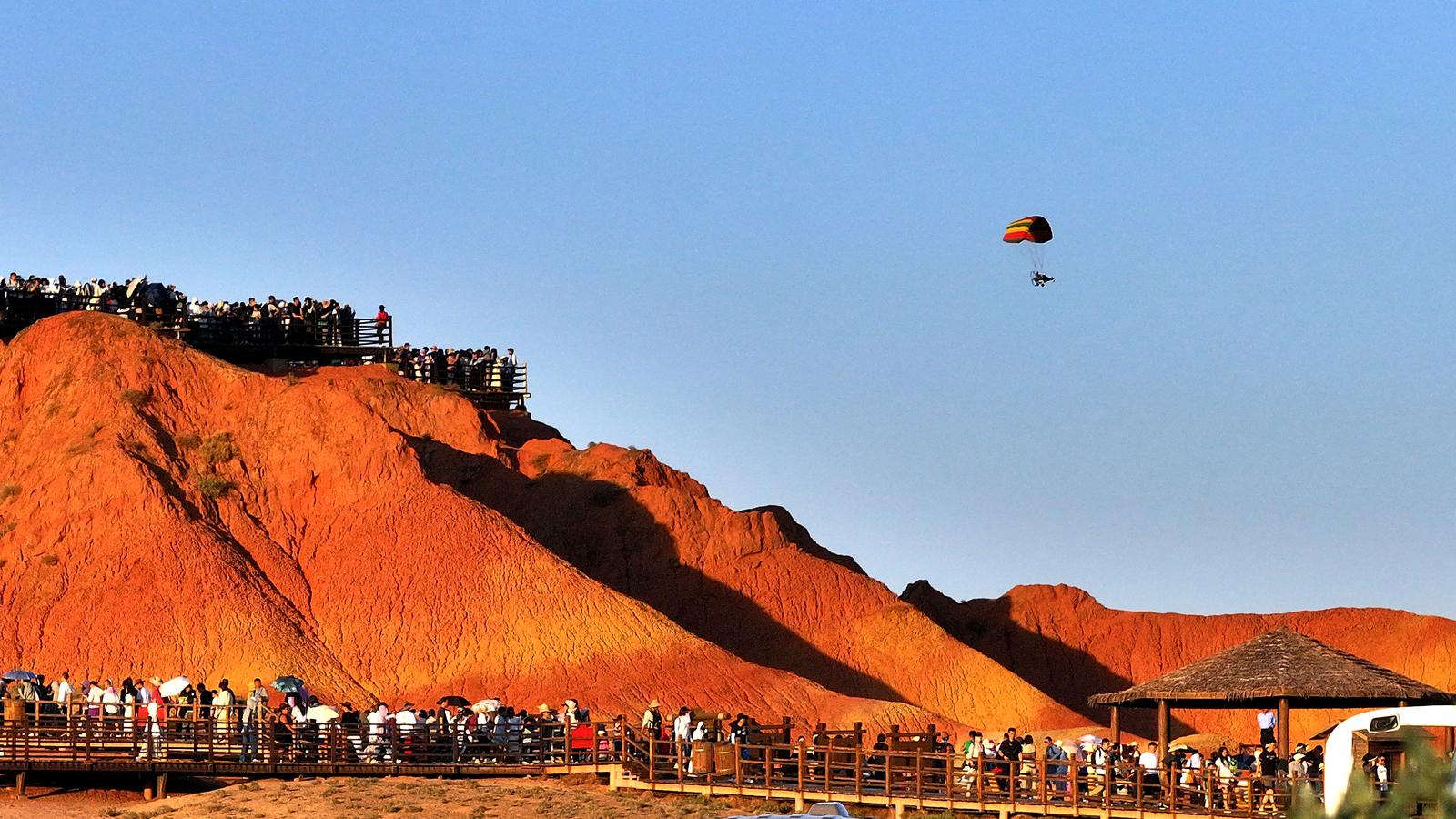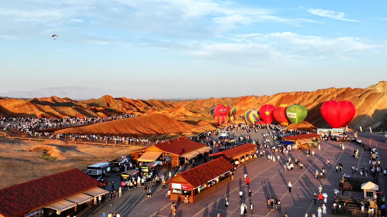 作为张掖文旅产业的“龙头”,七彩丹霞景区今年以丰富产品供给为核心,加大营销服务体系建设和客源地市场拓展力度,着力优化服务运营模式,不断完善旅游产品供给体系,持续激活旅游发展新动能。在原有旅游产品的基础上,创新推出舒享游、尊享游等定制化线路,同步打造“行知七彩丹霞·探秘地球印记”暑期研学游、全地形越野车体验、西域风情旅拍、千人绘丹霞等特色项目,让自然景观与深度体验相互融合。游客体验感极好,反响热烈,其中中国彩虹山、东方的卡帕多奇亚、低空旅游目的地等话题的热度上升,景区知名度和美誉度节节攀高。直升机、热气球等低空游览项目更成为网红打卡点,杭州游客聂之翔坦言,“从空中俯瞰丹霞的瑰丽,和地面体验完全不同,人生值得一试。”