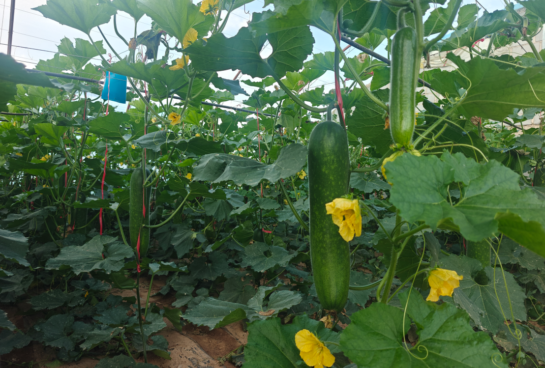 中国张掖网临泽讯 近日,走进临泽县倪家营镇汪家墩设施农业示范园区冬瓜种植基地,一朵朵小黄花结出致富的果实,“临润牌”冬瓜长势喜人。