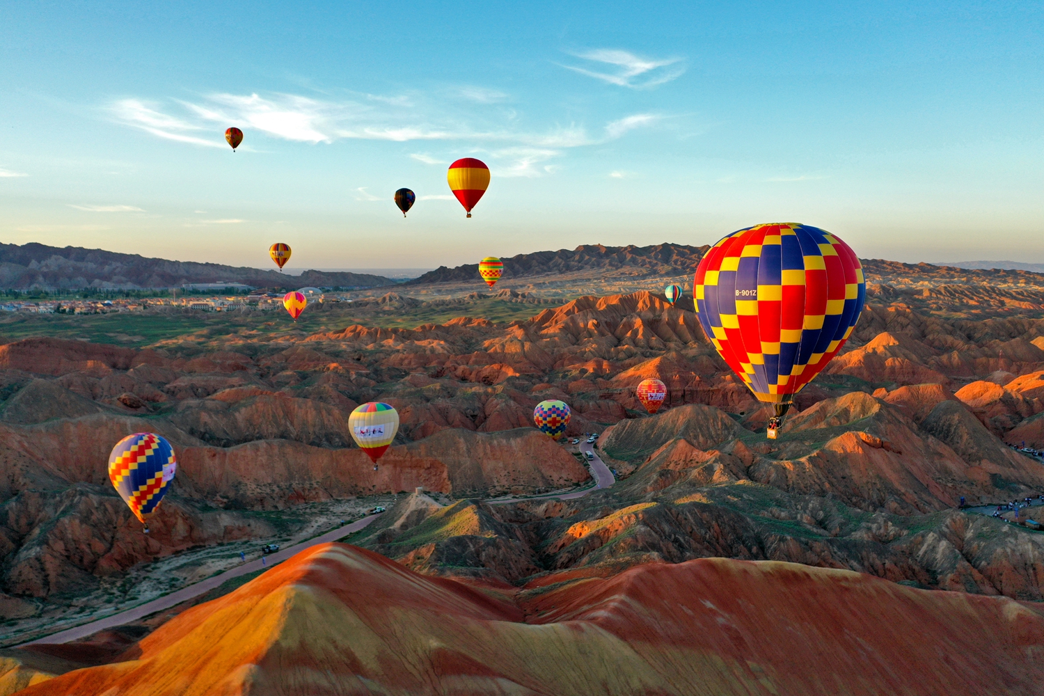 为了吸引更多游客,张掖七彩丹霞景区多措并举,“宠粉引流”,新增热气球、直升机、滑翔伞等特色项目,做深“七彩丹霞+”文章,进一步提升体验感。“国庆、中秋假期,景区直升机、热气球、动力滑翔伞、VR体验、七彩云端游、全地形越野车、乘驼观光等项目全天候运营,为游客带来不一样的旅游体验。”张掖七彩丹霞景区智慧旅游公司经理董泽民介绍,景区还策划了无人机飞行表演、热气球飞行表演、乐队演出等丰富多样的特色活动,让游客不虚此行。“这两天,每天下午5点至6点,我们在景区举行‘礼赞华诞七彩同辉’国庆主题音乐快闪活动,通过器乐演奏、互动演唱、舞蹈表演等营造节日氛围,也为游客游览助兴添彩。”董泽民补充。