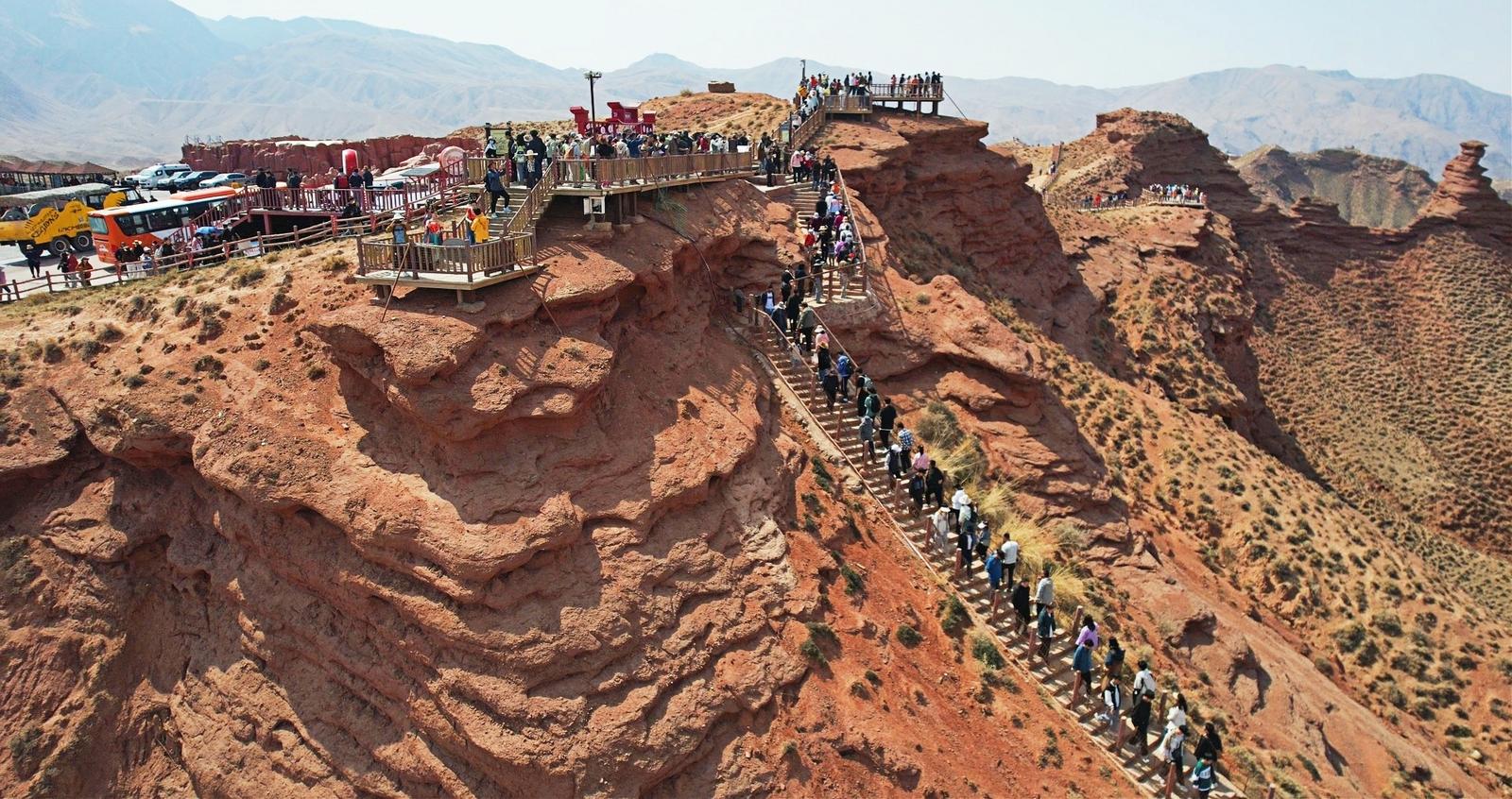 在游客尽情享受这片自然馈赠的背后,是景区对安全底线始终如一的坚守。“我们通过强化值班值守、深化隐患排查、完善应急响应三道防线,构建了全方位的安全保障体系。”甘肃西域文化投资有限责任公司副总经理梁俊彪表示。假日期间,景区建立了完善的客流监测系统,在关键节点增设执勤点,实时监控各区域的客流量,确保游览的舒适度与安全性。