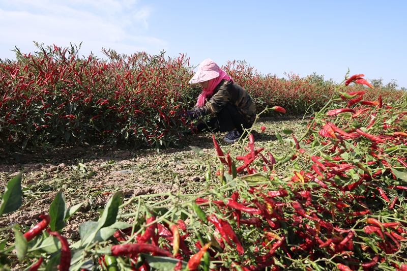 临泽县民生甜叶菊专业合作社理事长牛旭章说:“由于临泽得天独厚的地理条件,我们种出的辣椒色泽高,颗粒饱满,特别适合客户的需求。”