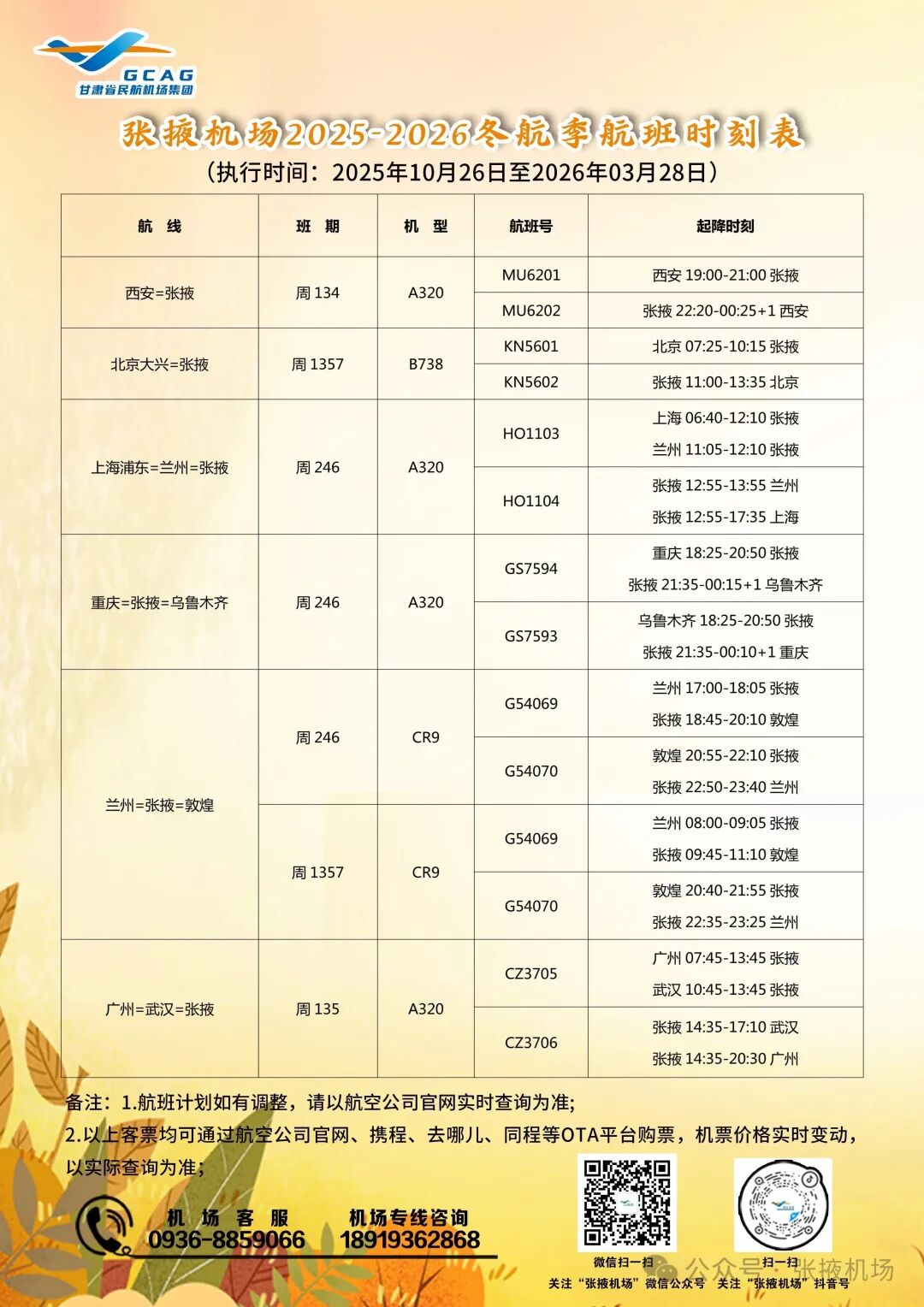 新航季,张掖机场航线将有7家航空公司计划执行6条航线,可通达北京、上海(浦东)、广州、兰州、西安、敦煌、重庆、乌鲁木齐、武汉共9座国内主要城市。