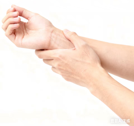 动作:一只手抓住另一只手的手腕,旋转揉搓几下。