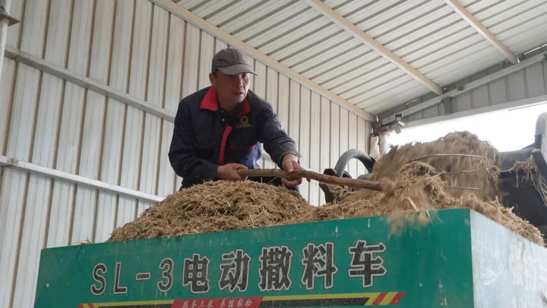 不远处的清泉镇西街村南滩养殖区,一幅井然有序的工作画面展现在眼前。一位工人手持铁锨,仔细清理着圈舍通道,动作娴熟而专注。露天圈养区,电动撒料车正缓缓前行,均匀地将饲料撒入食槽,牛群纷纷走向食槽开始进食。甘肃贵优万顺农牧发展有限公司饲养员马军林刚操作完撒料车,望着争相进食的牛群,语气中带着成就感:“现在的养殖条件越来越好了,机械化喂养让我们省了不少力气。看着这些牛长得壮实,我们干活也特别有劲头。这份工作让家里的日子越来越红火了。”