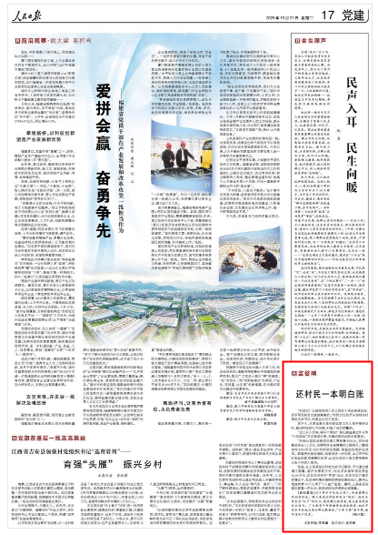 10月21日,《人民日报》“监督哨”栏目以《还村民一本明白账》为题,报道甘肃省张掖市高台县纪委监委监督工作。