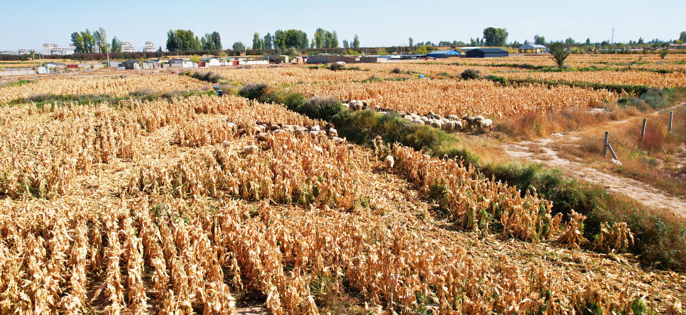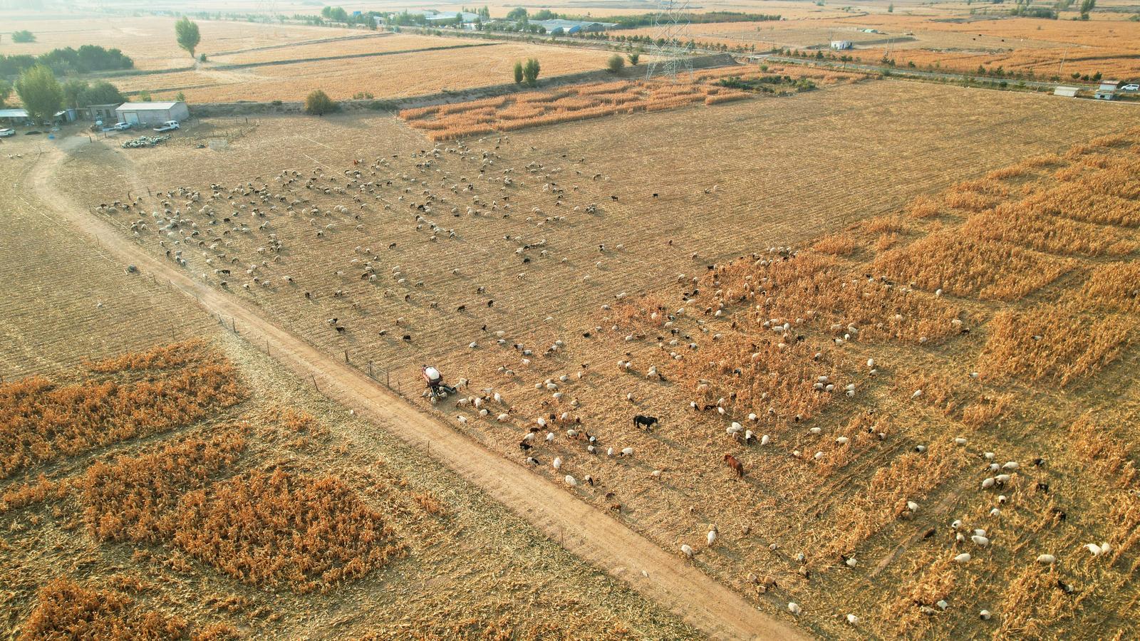 秋收后的民乐县,本该是一片寂静的田野,如今却格外热闹。成群的羊只在玉米茬间穿梭,啃食着残留的秸秆,远远望去,宛如一幅流动的田园画卷。这幅画卷背后,藏着一本让农田“冬闲”变“冬忙”的经济账。