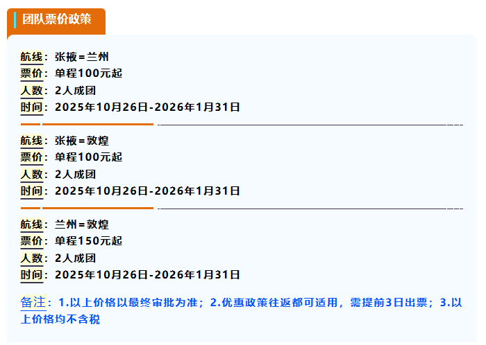 彩虹张掖·2人成团丨兰州、敦煌团队特惠,单程100元起→