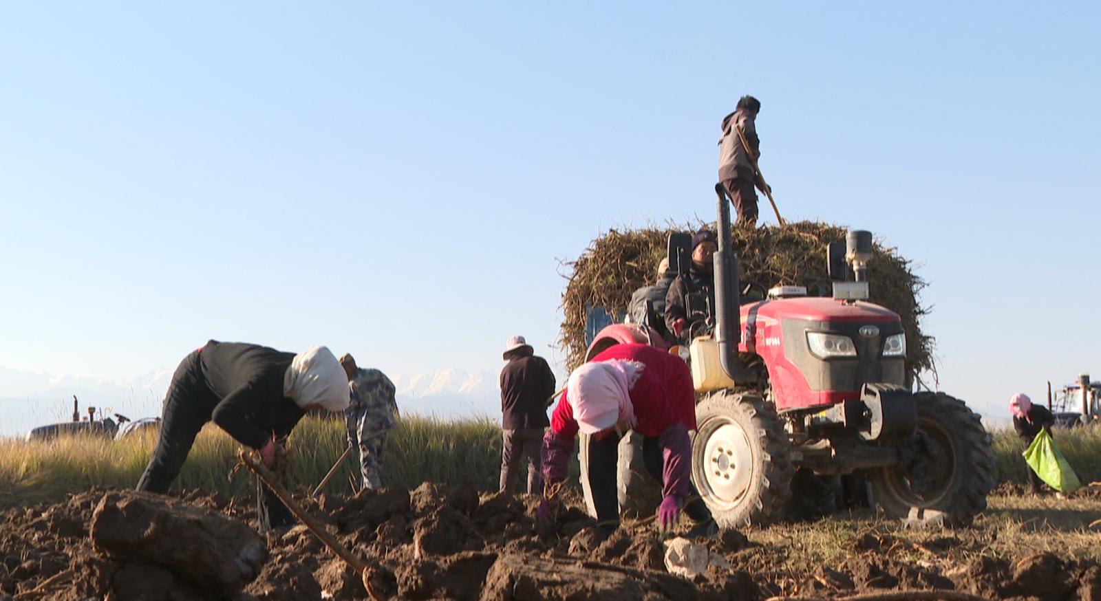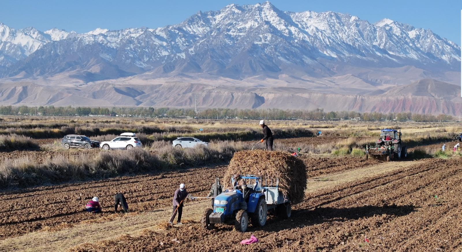 民乐县永固镇滕庄村党支部书记章三平说:“今年滕庄村主要种植的是黄芪,这两天陆续进行采收,黄芪长势良好,每亩地基本可以产700公斤左右,再有一周左右就能采挖完毕。通过推行‘党支部+合作社+农户’的产业发展模式,有效整合各方资源,发展壮大村集体经济,群众通过流转土地和基地务工获取劳动报酬,实现增收。”