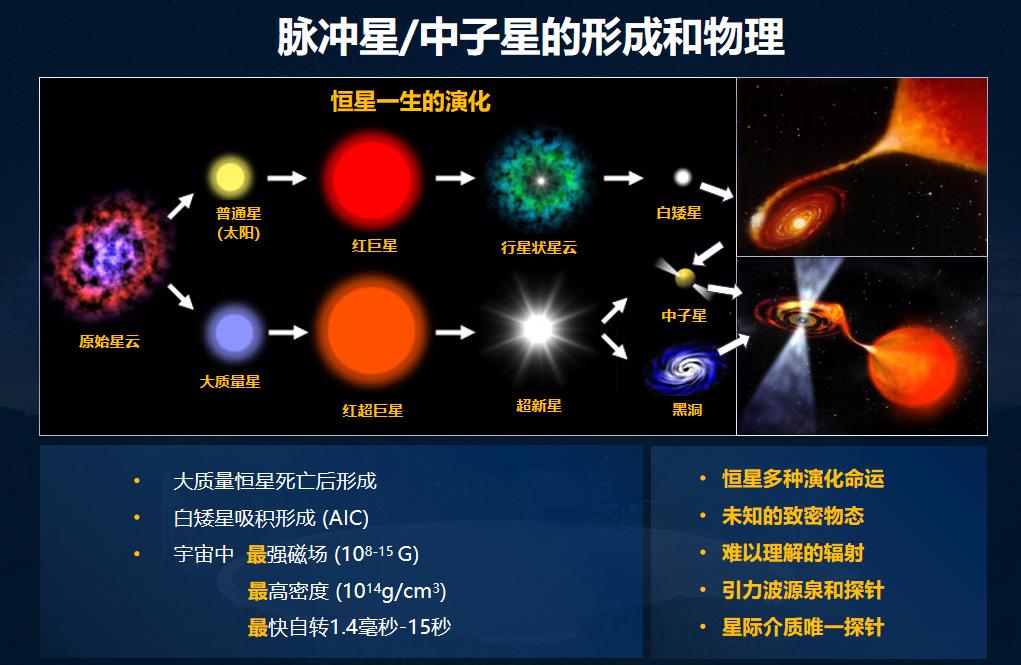 在物理研究层面,过去认为中子星由纯中子构成,但有理论家提出中子可能分解为夸克,中子星内部可能是夸克态。人类看到了脉冲星的辐射,但脉冲星如何产生辐射,即辐射物理机制也尚未明确。此外,脉冲星信号的传播特性可用于探测银河系星际介质;其稳定的自转特性,还能辅助探测遥远宇宙的引力波。