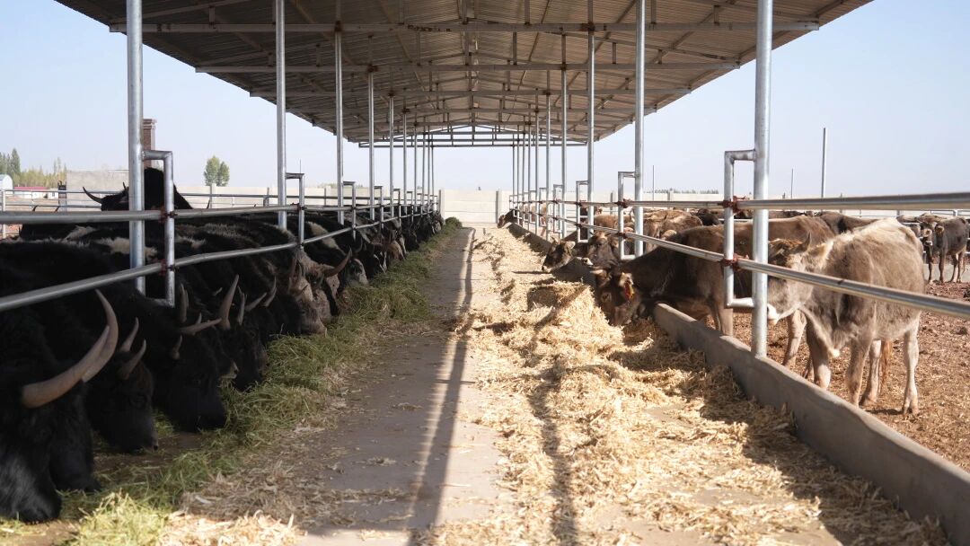 在白银乡东牛毛村现代化养殖小区内一派繁忙景象,崭新的彩钢棚舍在阳光下整齐排列,牧民们忙着喂养牦牛,壮实的牦牛悠闲进食。