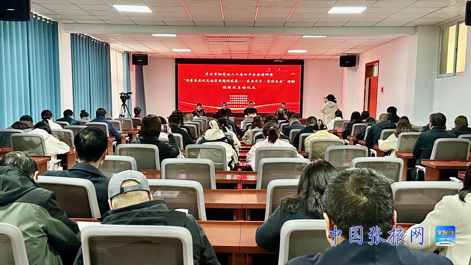 当天,学习贯彻党的二十届四中全会精神暨“沿着总书记足迹学思想讲发展——东西牵手·宣讲走亲”活动在张掖市委党校正式启动。来自江苏南通、甘肃武威的宣讲骨干与张掖本地宣讲员齐聚一堂,以“宣讲+调研”的方式,循着总书记的足迹,共学思想、共话发展,进一步夯实理论根基、提升宣讲能力,推动党的创新理论在基层落地生根、开花结果。