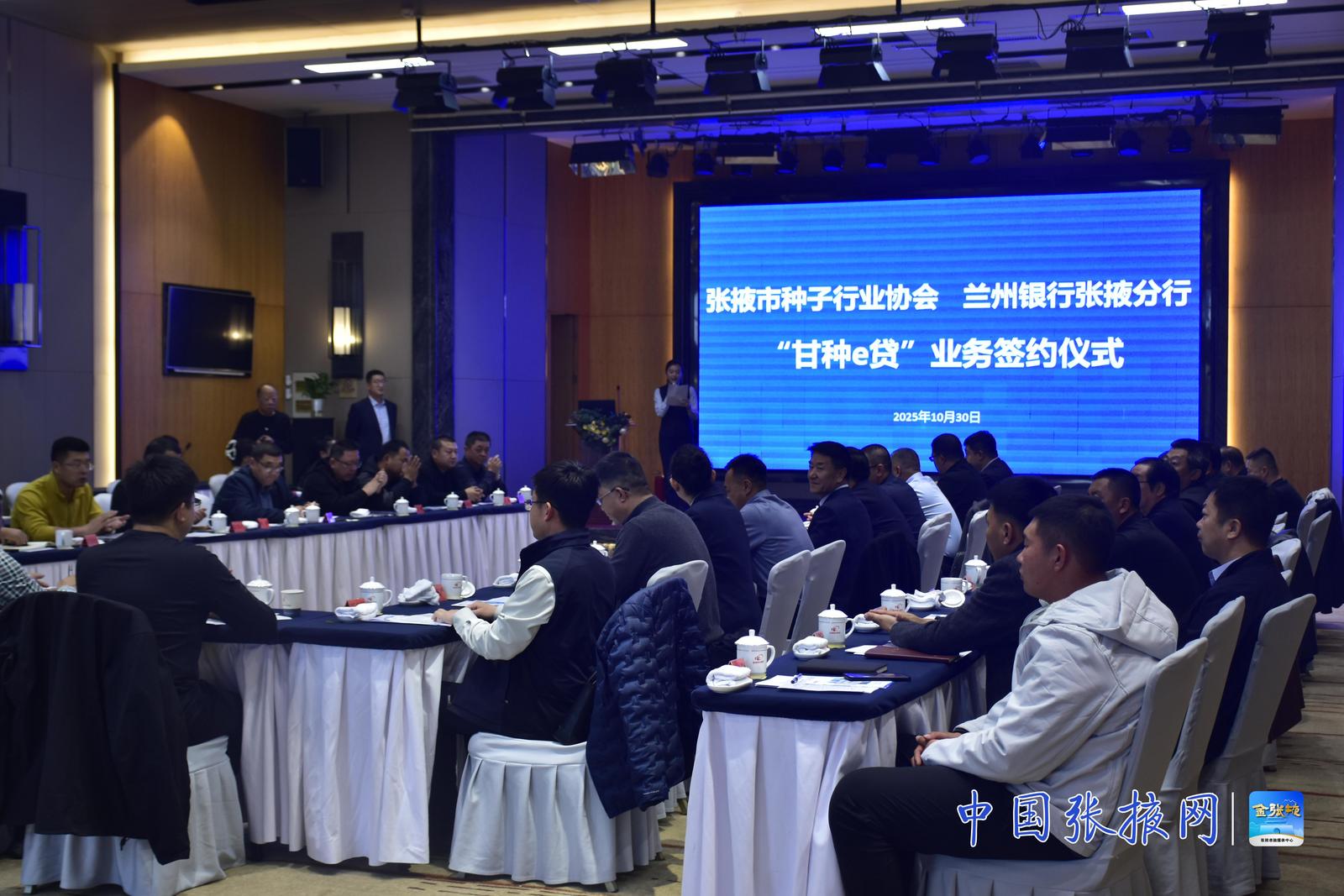中国张掖网讯 10月30日下午,兰州银行张掖分行与张掖市种子行业协会在张掖润湖假日酒店举行“甘种e贷”业务合作签约仪式,标志着金融“活水”与种业“沃土”的深度融合,为张掖种业振兴注入了全新动能。此次合作旨在构建“信用授信+项目赋能”的多维服务体系,为张掖制种企业量身定制金融解决方案,助力企业在行业发展中乘风破浪、行稳致远。60位来自张掖市种业协会、种业企业以及兰州银行张掖分行的代表共聚一堂,共同见证这一重要时刻。