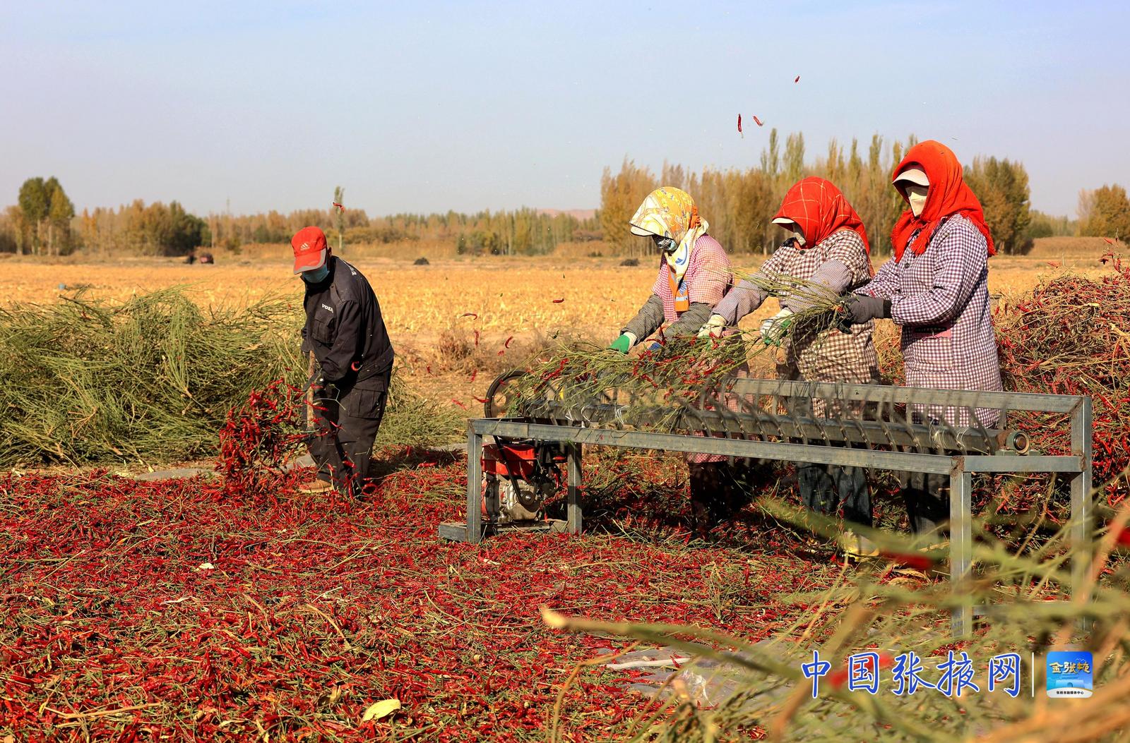 中国张掖网临泽讯 深秋时节,当日历翻到秋收的“最后一页”,临泽县鸭暖镇的广袤田野上,1.4万亩辣椒正“搭”着收获季的“末班车”,迎来集中采收。