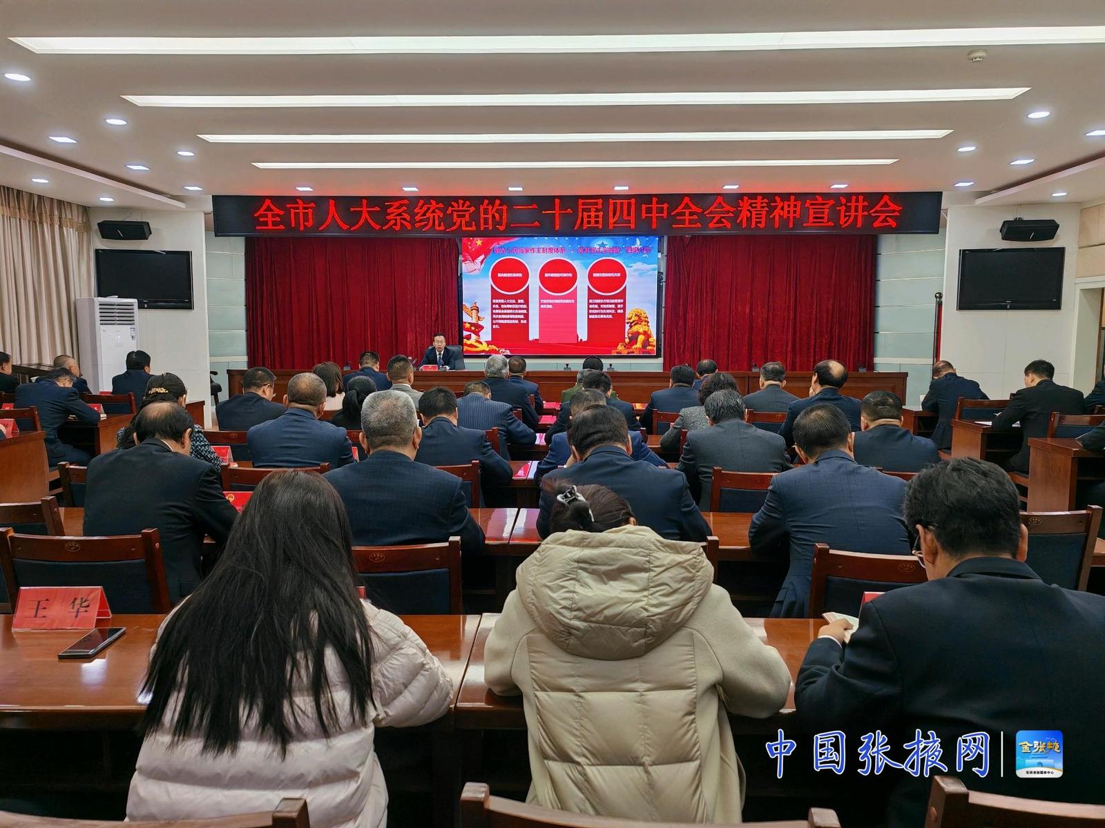 中国张掖网讯 11月18日,张掖市人大常委会党组书记、主任张文生在人大系统宣讲党的二十届四中全会精神。市人大常委会组成人员、市人大各专委会组成人员、部分市人大代表、各县区人大主要负责同志及市人大机关全体干部参加宣讲会议。