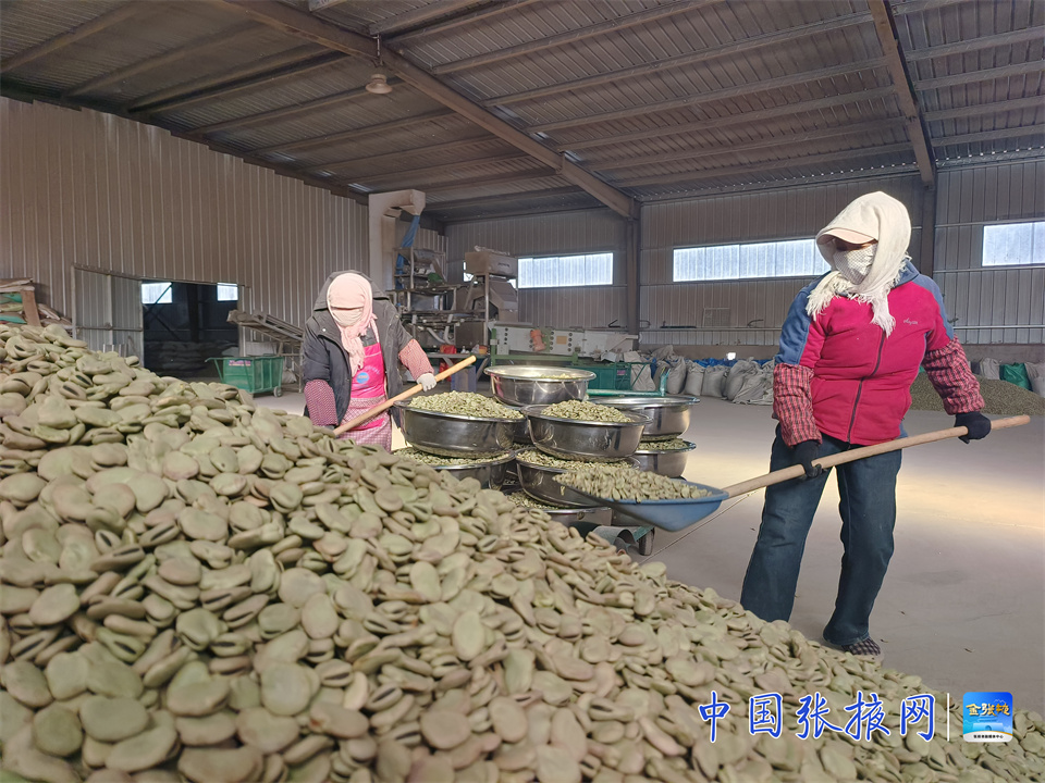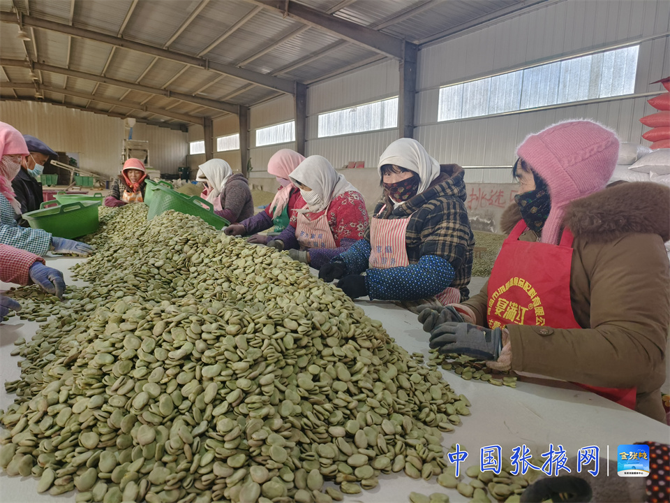 中国张掖网民乐讯 时下,走进民乐县洪水镇刘总旗村的甘肃浙民农业有限公司生产车间,一派热火朝天的忙碌景象映入眼帘,村民们围坐在分拣台前,双手翻飞间,一颗颗饱满的蚕豆被精准分类,装入不同的容器。这忙碌的身影背后,是洪水镇依托蚕豆产业铺就的乡村振兴增收路。