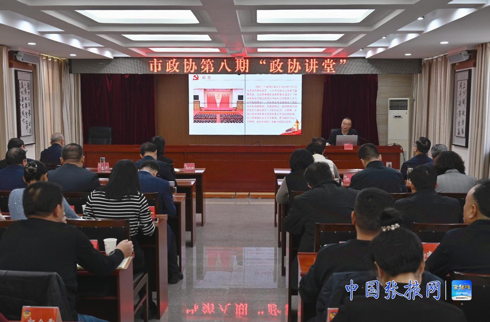 中国张掖网讯 11月21日,张掖市政协举办第八期“政协讲堂”。市政协委员、市委讲师团团长王桓珍结合学习贯彻党的二十届四中全会精神,专题解读习近平文化思想,并就政协委员学习贯彻全会精神高质效履职畅谈认识体会。市政协文化文史委相关负责人分享有关调研成果。市政协领导及机关全体干部职工、部分界别委员参加。