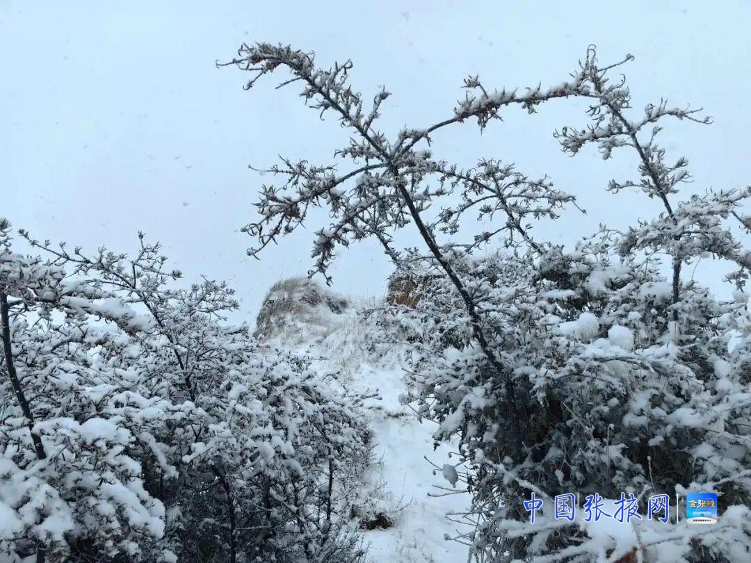 中国张掖网山丹讯 11月23日,坐落在河西走廊峰腰地带的焉支山,悄然迎来今冬首场降雪。雪花纷纷,轻盈洒落,为焉支山披上了一袭素净白衣,尽显北国风光的静谧与诗意。