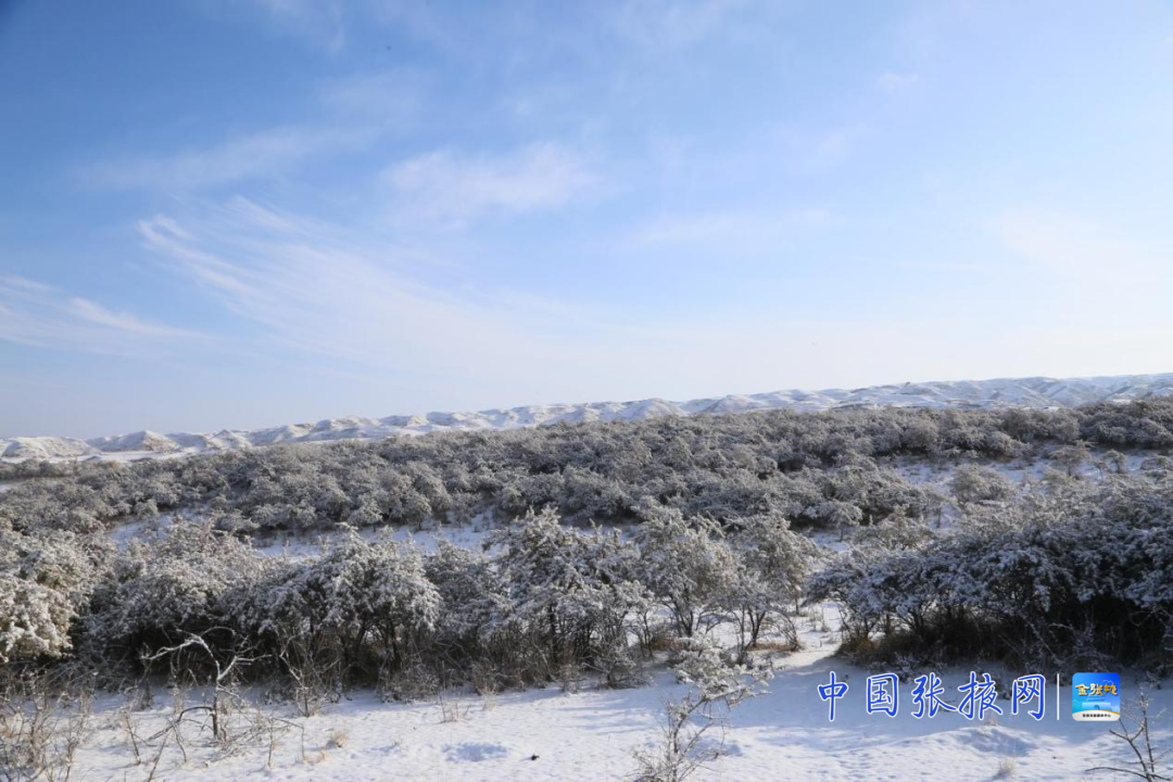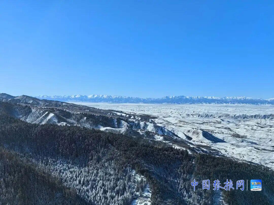 雪后的焉支山银装素裹,景色如画,美不胜收,宛若一幅淡雅水墨画,宁静之中,恍如步入洁白的童话世界。(徐柏林 刘伯武)