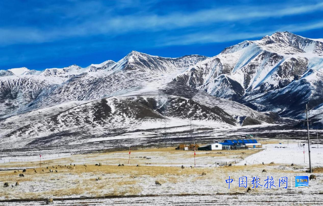 远处的祁连山脉,在雪的覆盖下,宛如一条蜿蜒的巨龙,静静地卧在天地之间。山顶的积雪在阳光的映照下,闪耀着金色的光芒,与洁白的雪形成了鲜明的对比,勾勒出一幅壮美而又和谐的画面。