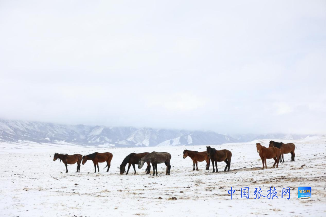 中国张掖网山丹讯 当秋的余韵还在大地上缱绻徘徊,初冬已悄然携着一场雪降临到了山丹马场。这片古老而广袤的草原,在雪花的轻抚下,瞬间幻化成了一个银装素裹的童话世界。