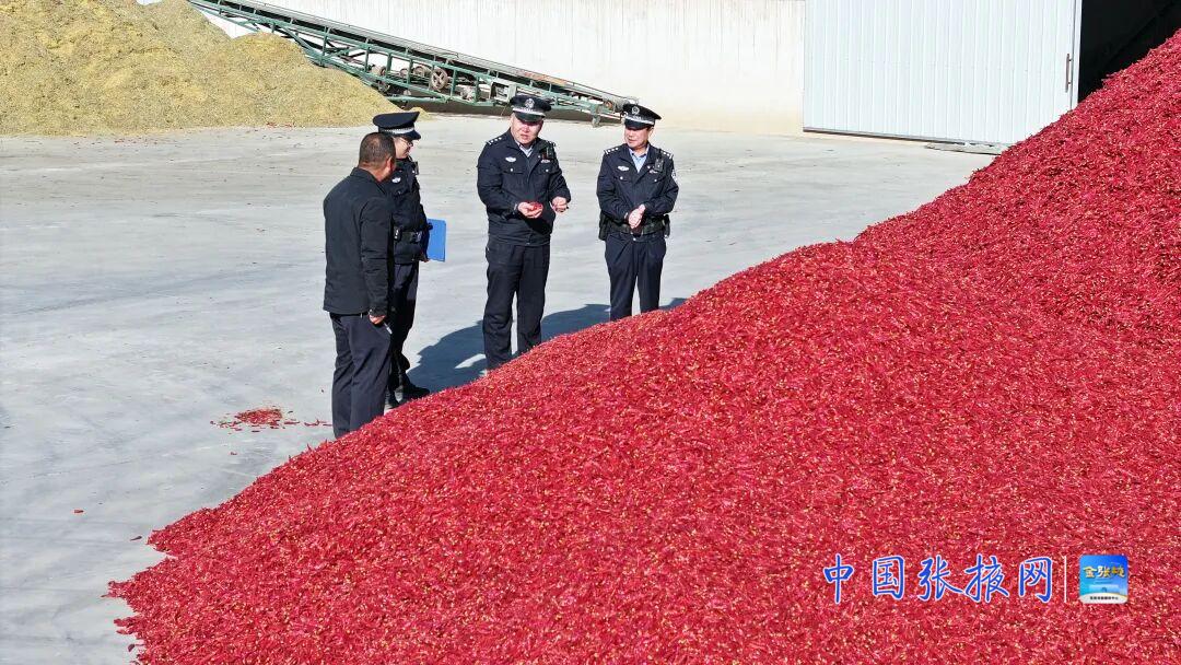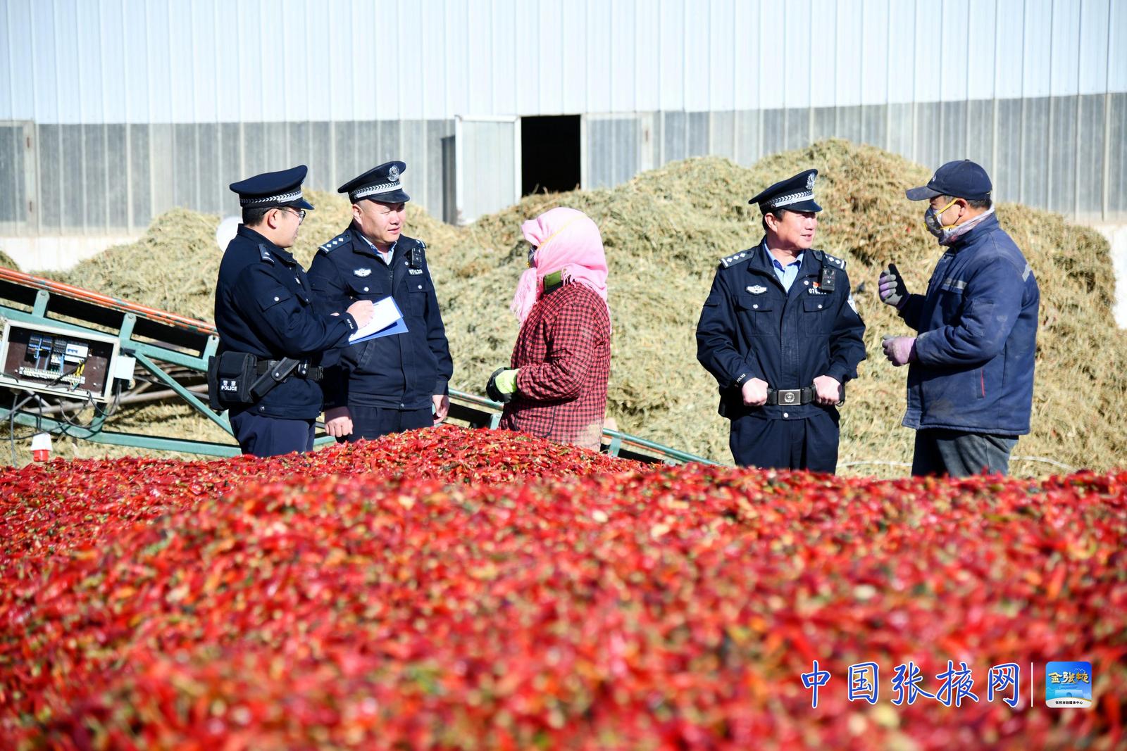 张掖市临泽县新华镇种植朝天椒特色产业,拓宽农户致富路径,带动了周边村民就近务工,每年11月是朝天椒丰收季,辖区道路货车穿梭,人来人往,是这个小镇一年当中最热闹、最繁忙的时节。临泽县公安局新华派出所在保农、护企、安商上下功夫、出实招,扎实开展矛盾纠纷化解、风险隐患排查和护航企业发展等工作,确保在朝天椒丰收季节平安不出事。