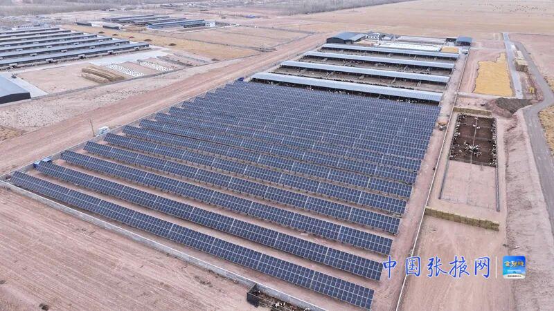 在甘肃汇泽肉牛养殖小区,一栋栋标准化牛舍整齐排列,4栋牧光互补牛舍的顶棚及支架上,4.3兆瓦分布式光伏阵列在阳光下熠熠生辉。嗞嗞作响的电流经11台逆变器转化后,源源不断汇入国家电网,实现了“棚上发电、棚下养殖”的良性循环。