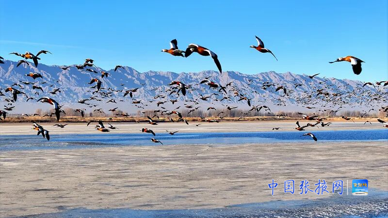 中国张掖网临泽讯 大雪节气将至,来到临泽县双泉湖水库旁,放眼远眺,湖面尚未完全封冻。澄明的水面上,候鸟们或结伴游弋,划出层层温柔涟漪;或低头觅食,享受着水库周边充足的天然饵料;或舒展羽翼,在阳光下展现优美身姿。清脆的鸣叫声打破了冬日的静谧,让这片水域充满了生命活力,为萧瑟的冬日增添了一抹灵动的亮色,构成了一幅别致的风景。(程莉 田育明)