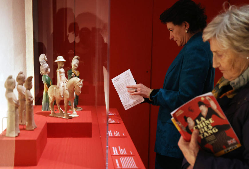 2024年11月18日,在位于法国巴黎的吉美国立亚洲艺术博物馆,人们参观“中国·唐——一个多元开放的朝代(7至10世纪)”展览。新华社记者高静摄