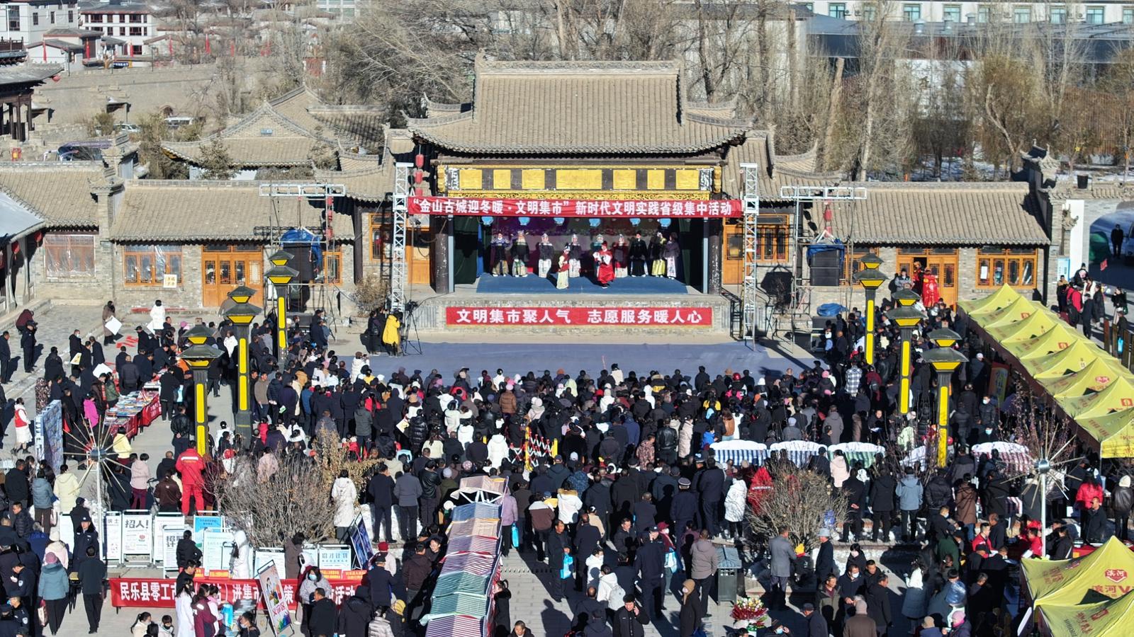 冬日的甘肃民乐古城暖意融融,一场集九大主题区域、数十项特色活动等于一体的“金山古城迎冬暖·文明集市”新时代文明实践省级集中活动在民乐县热闹开市,让古城的烟火气与文明风交织相映。