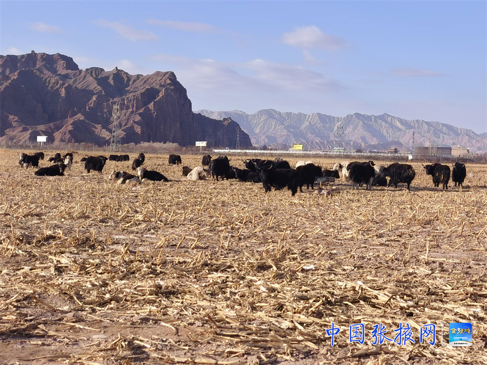 据悉,每年10月至次年3月,祁连山下的牧民便开始从世代放牧的草场迁徙至农区租田借牧。作为重要借牧目的地之一的倪家营镇,每年秋收后,玉米秸秆地便成为青海、肃南借牧群众眼中的“宝地”。“这里的秸秆营养成分高,牛羊采食后上膘快、奶水足,羔羊成活率也显著提高,既节约了成本、又保护了草场,还能把牛羊喂得膘肥体壮。”在临泽县倪家营镇南台村借牧的肃南县康乐镇康丰村牧民党员高永海说。