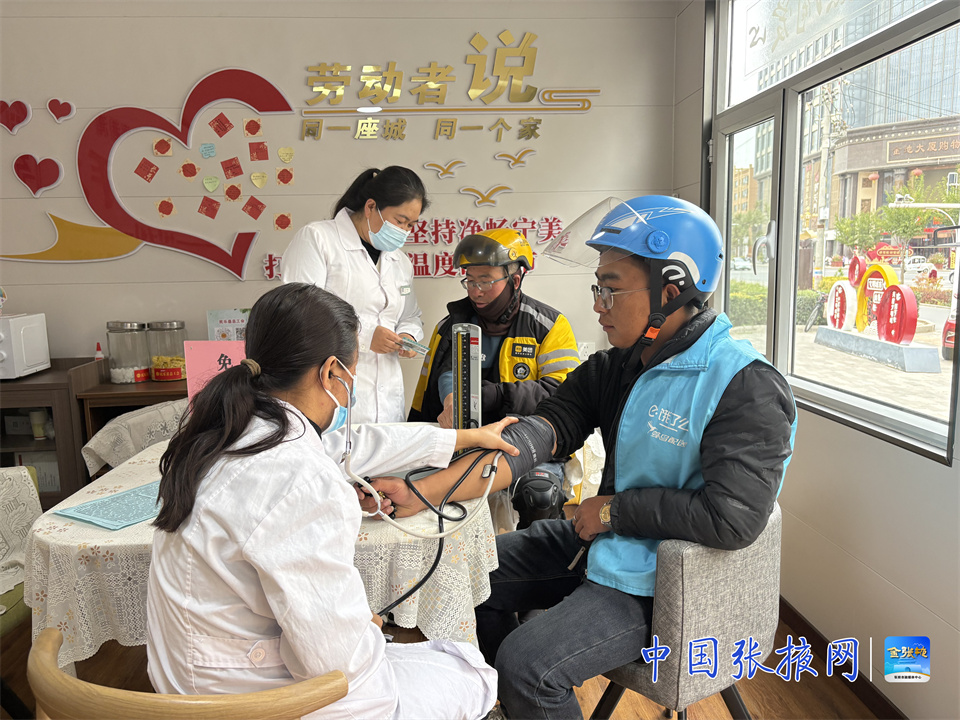 日常服务中,该县持续深化“我为群众办实事”实践活动,定期组织医护人员开展健康义诊、慢性病咨询、健康知识讲座,邀请专业律师提供劳动合同、权益保障等法律咨询服务,联动志愿者开展免费理发、衣物缝补等便民服务,累计开展各类特色服务活动80余场次,覆盖新就业形态劳动者超1.2万人次。为凝聚服务合力,民乐县积极动员机关事业单位职工、社区工作者主动参与志愿服务,广泛邀请医护人员、律师、爱心志愿者组建专业服务队伍,同时联动社会组织、爱心企业提供物资支持和场地保障,构建起“多方联动、资源共享、优势互补”的关爱服务体系。针对劳动者普遍关注的健康问题,该县还为300余名新就业形态劳动者提供免费体检服务,建立个人健康档案,定期推送健康提示,让健康关怀精准落地。