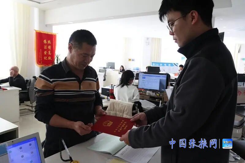 甘肃金锐合通建材有限责任公司工作人员金亮说:“拿到首本证书真是非常荣幸,这本证书给我们矿山企业带来了实实在在的安全感和获得感,权益更有保障了。”