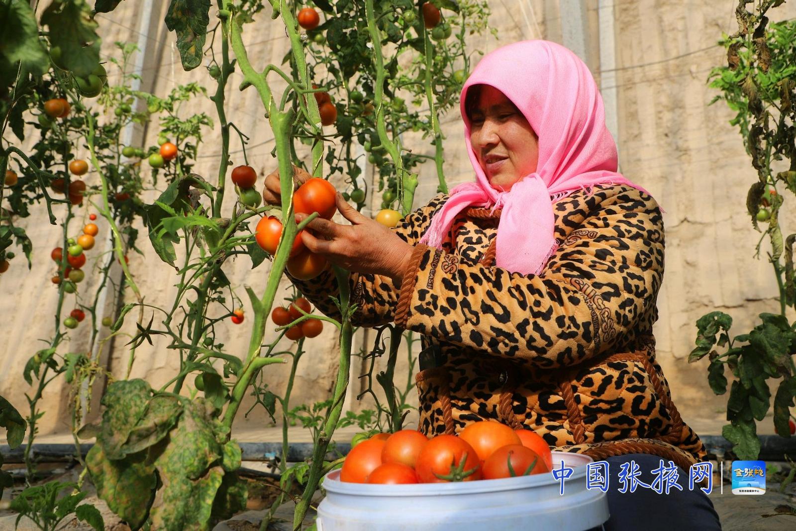 中国张掖网讯 隆冬时节,天地间一片银装素裹,张掖市甘州区党寨镇马站村八社朱东年的日光温室里暖意融融、生机盎然:翠绿的辣椒藤蔓爬满支架,细长的青辣椒坠满枝头,泛着鲜亮的光泽。朱东年夫妇提着袋子,穿梭在整齐的垄畦间,指尖翻飞,娴熟地将饱满鲜嫩的辣椒摘下、放入袋中,不一会儿一袋青椒摘满,朱东年提着袋子走出来,出口处堆着几十袋摘好的青椒,等待收购东家前来装车。