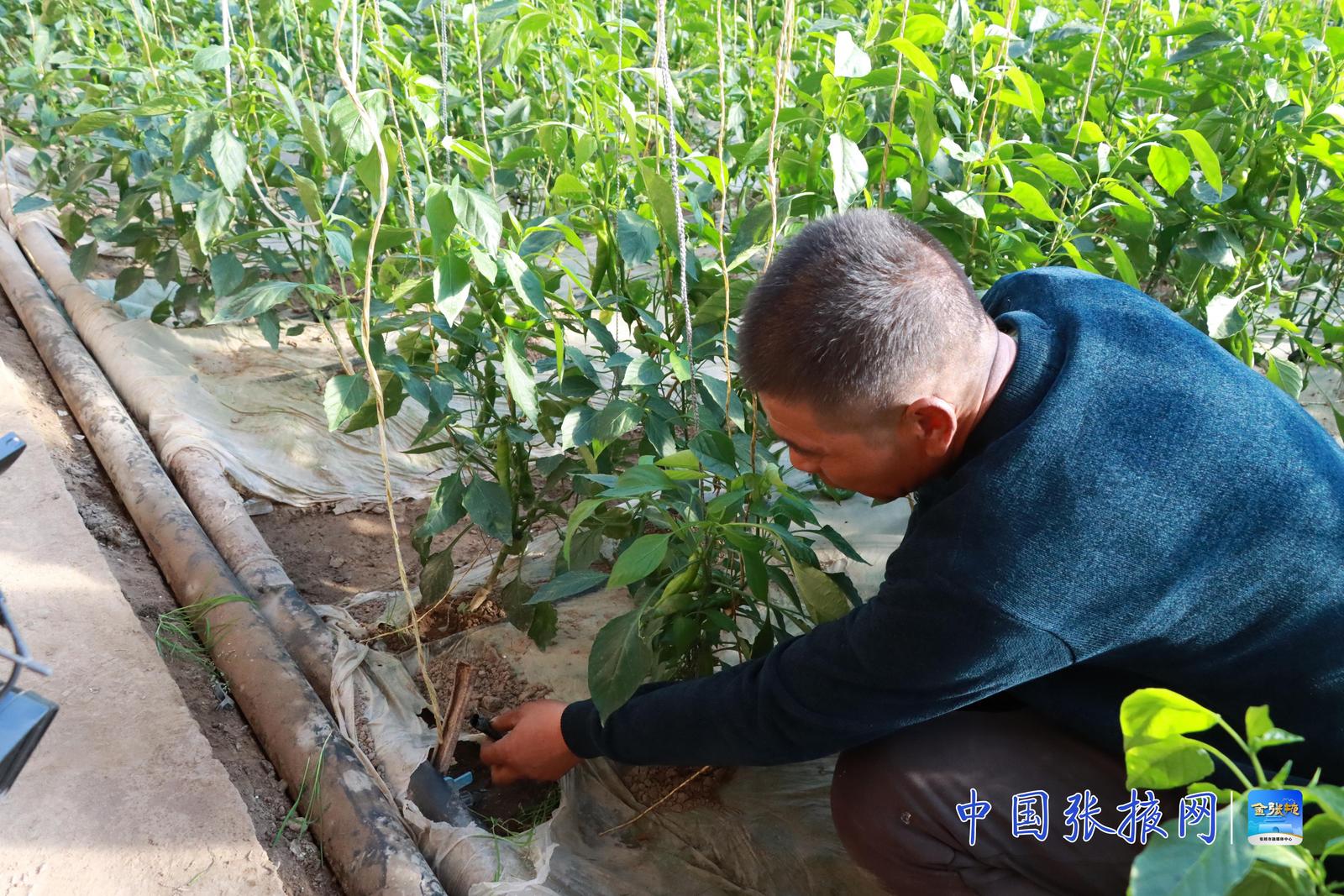 中国张掖网讯 冬至已过,正值数九寒天,广袤的西北大地万物萧瑟。走进张掖市甘州区梁家墩镇六号村五社村民兰祥家的辣椒大棚,却见满满绿意。兰祥站在棚中,望着眼前这片生机勃勃的绿色,笑得合不拢嘴:“多亏了那‘节水神器’,你看我这辣椒,长得多厚实!”