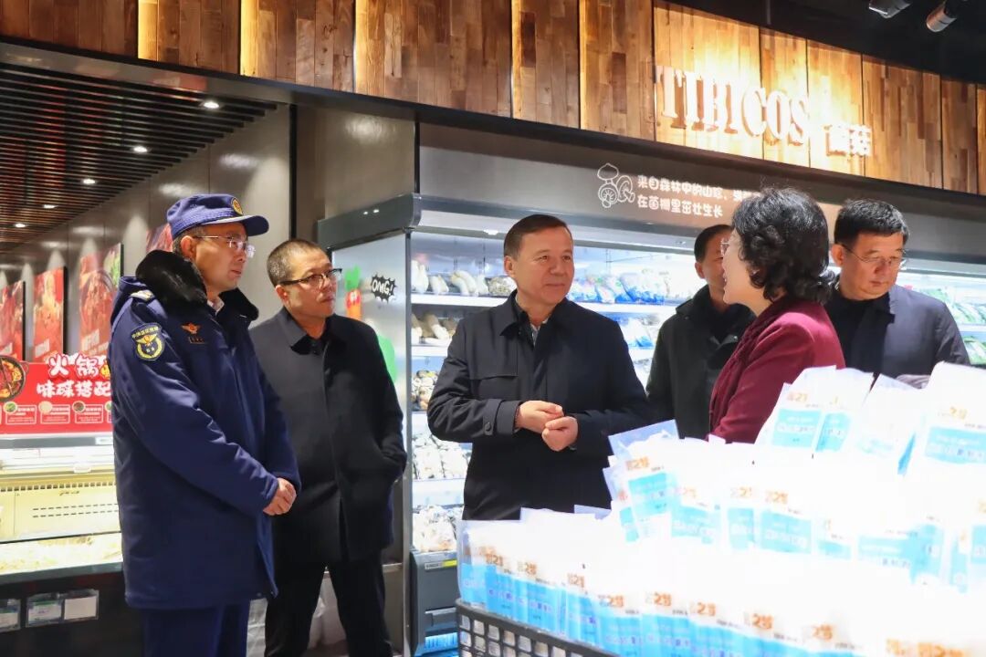 叶尔波力·孜汗来到新乐超市鑫汇店、甘州大集等地,实地调研商业综合体安全生产和市场保供工作。他强调,要紧盯年终岁末关键时期,进一步压紧靠实属地管理责任、行业部门监管责任和企业主体责任,严格落实“三管三必须”要求,坚决守牢安全生产底线。要强化民生商品保供稳价,充实储备库存规模,加强市场监测监管,维护好市场秩序和消费环境,全力保障人民群众“米袋子”“菜篮子”。