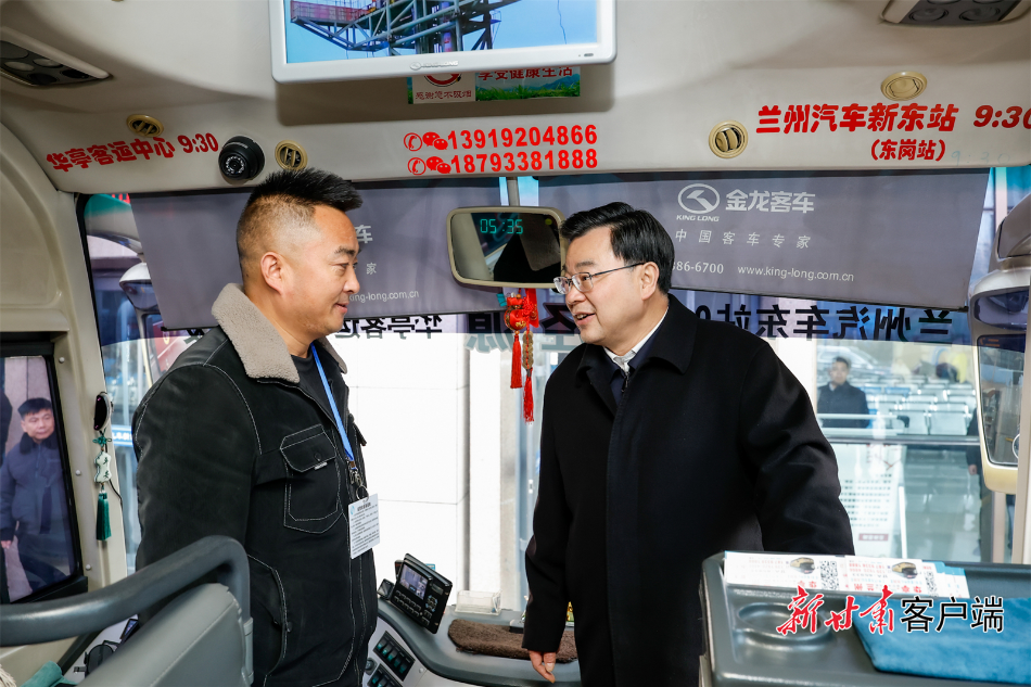 在兰州汽车新东站,胡昌升现场检查旅客进站安检、班线运力调度及车辆安全保障等情况,并与司乘人员、旅客和安检人员交流。他强调,元旦假期人流、车流、物流将大幅增加,要科学精准调度,加强运力组织、运输服务、错峰引导和应急处置,切实提升安全运营管理水平。要做好车辆日常检查,保持安全通道畅通,细致入微排除各类安全风险隐患。要加强司乘人员安全教育,严防疲劳驾驶、严查超速超载等行为,确保人民群众安全出行。要强化科学研判,加强路况巡查,扎实做好低温雨雪冰冻天气的预警提醒、防范应对,及时除冰除雪、保通保畅。