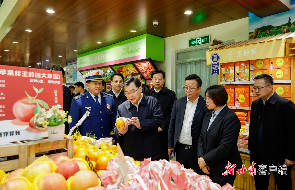新甘肃客户端兰州12月30日讯 (新甘肃·甘肃日报记者 崔亚明)元旦假期来临之际,省委书记、省人大常委会主任胡昌升今天在兰州调研检查安全生产、民生商品保供稳价和节日消费等工作,走访慰问全国先进工作者、老党员和基层一线工作人员,向全省人民致以节日祝福。他强调,要深入学习贯彻党的二十届四中全会精神,全面贯彻落实习近平总书记视察甘肃重要讲话重要指示精神,坚持以人民为中心的发展思想,纵深推进主动创安主动创稳,以“时时放心不下”的责任感履职尽责,用心用情做好元旦期间惠民生、保供应、促消费、护稳定等工作,确保全省人民度过欢乐平安祥和的节日。