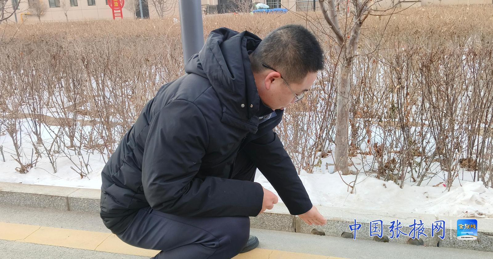 雪后初晴,走进张掖市甘州区蓝山公馆六期小区,地面清爽,不见积水。低头细看,脚下透水砖道旁的路牙石上,一个个小孔清晰可见。张掖市金辉物业管理有限责任公司经理张博蹲在绿地边,指着湿润的土壤对记者说:“雨雪水顺着路牙石上的孔洞,直接就进绿地了,一点不浪费。我们地下‘藏’着几十个雨水收集池,下雨雪时就存起来,平时可抽出来浇花洗路,让水在小区里高效利用。”