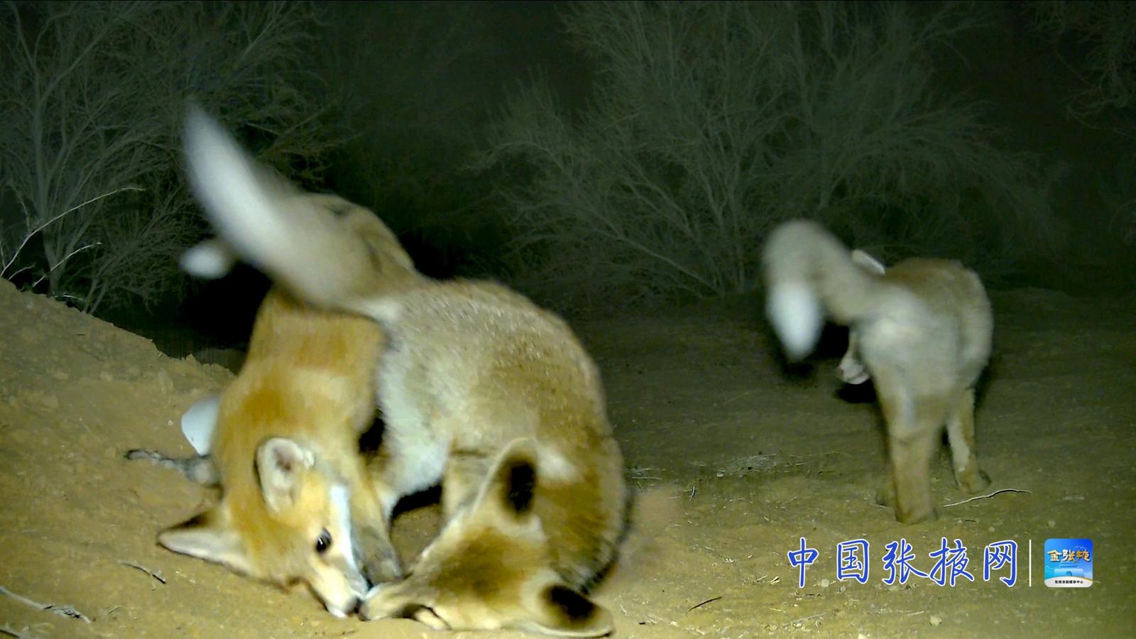 中国张掖网临泽讯 近日,在张掖市临泽县治沙林场,调查人员通过红外相机监测,首次记录到亚洲野猫和赤狐在人工洞穴内繁育幼崽的影像。这一发现表明,该治沙区为中小型食肉动物提供了稳定、安全的繁殖环境,也印证了当地生态修复与生物多样性保护工作取得良好成效。
