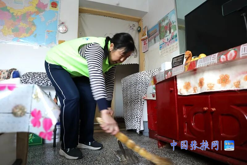 “护理员一个月来四次,为我量血压、按摩,还帮我擦桌子、扫地、拖地,照顾很周到。”康金花说。