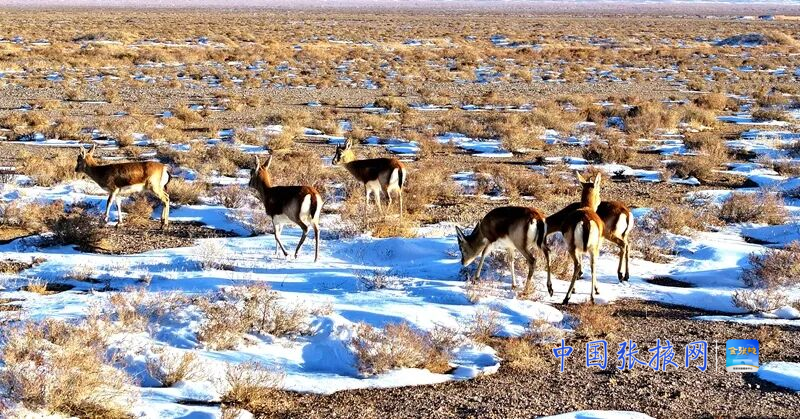国家二级保护野生动物鹅喉羚群现身张掖临泽