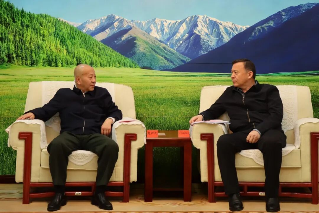 中国张掖网讯 1月25日,张掖市委副书记、市长叶尔波力·孜汗与新疆生化药业董事长赵新民一行座谈,围绕医学、文化建设及跨界融合进行交流洽谈。市政府秘书长杨育林参加。