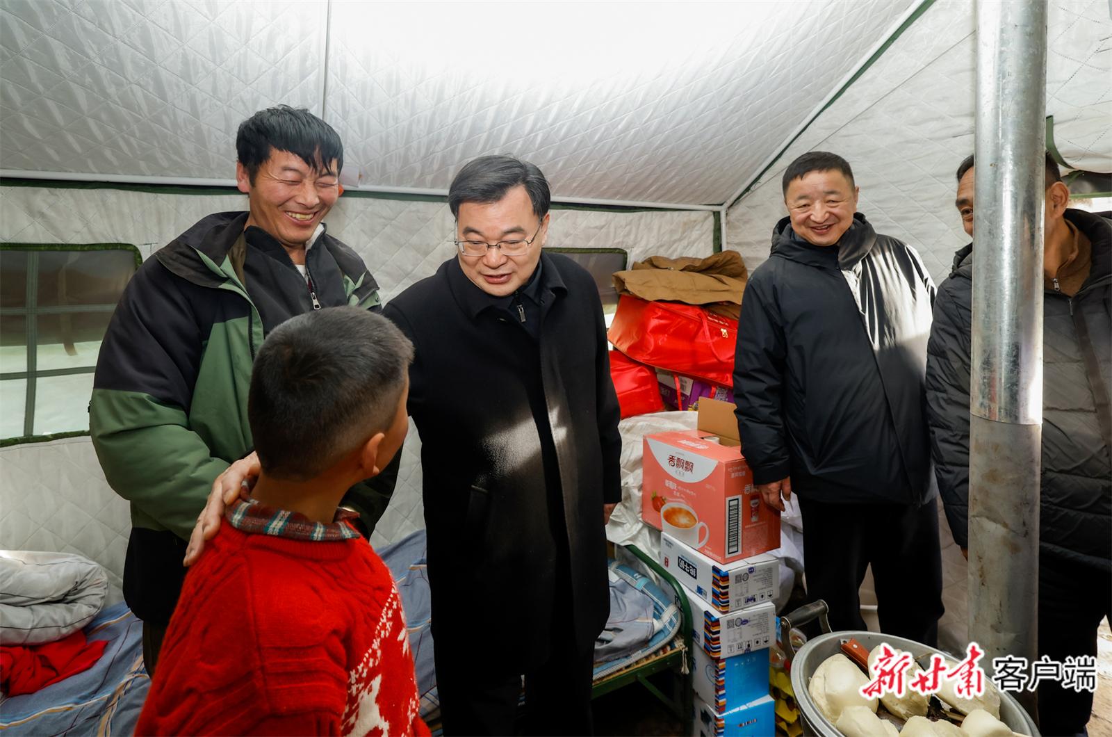 1月27日,省委书记、省人大常委会主任胡昌升赶赴迭部县地震灾区,实地调研指导抗震救灾工作,看望慰问避险安置群众。新甘肃·甘肃日报记者 孟捷
